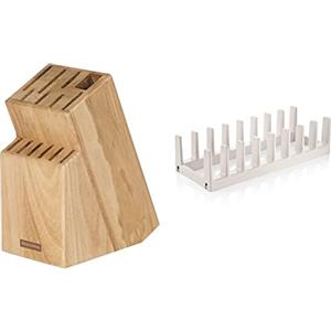 Tescoma 869508 Woody Ceppo per 13 Coltelli e Trinciapollo/Acciaino & 899480 FlexiSPACE Porta Coperchi, Bianco