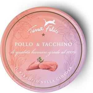 Terra Felis Cibo Umido per Gatti Adulto Pollo e Tacchino - 90% Carne, Senza Cereali, Lattina da 80g