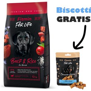 FITMIN Dog For Life Manzo e Riso 12kg - Cibo secco nutriente e bilanciato per cani adulti