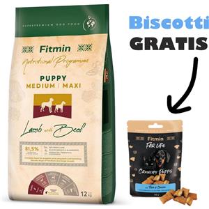FITMIN Medium Maxi Puppy Lamb&Beef 12kg - Alimento Completo per Cuccioli con 50% di Carne Fresca di Agnello e Manzo
