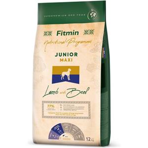 FITMIN Maxi Junior Lamb&Beef 12kg - Alimento Completo per Cuccioli di Taglia Grande con 50% di Carne Fresca di Agnello e Manzo, Privo di Glutine