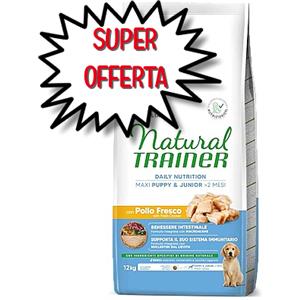 Natural Trainer Maxi Puppy & Junior con Pollo - Crocchette Secche per Cuccioli di Razza Grande, 12 kg