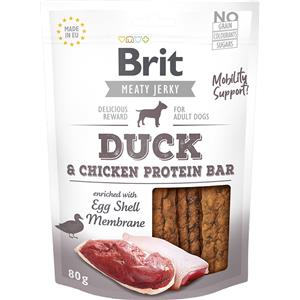 Brit Jerky Snack per Cani - Barrette Proteiche all'Anatra e Pollo 80 g, Senza Cereali, 85% Carne