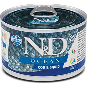 Farmina N&D Ocean Adult Mini Merluzzo e Calamari - Alimento Umido Completo per Cani Adulti - Lattina da 140g