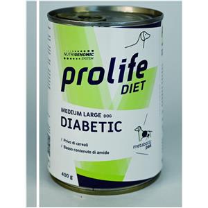Prolife Cibo Umido Dietetico per Cani Diabetici Medium/Large - 400g - Pollo e Manzo Fresco