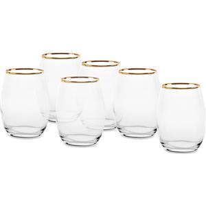 PASABAHCE Amber - Set di 6 Bicchieri in Vetro Trasparente con Bordo Oro, Capacità 35 cl