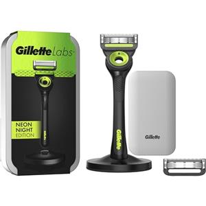 Gillette Labs Rasoio Barba Manuale, 2 Lamette Gillette da Barba di Ricambio, Base Magnetica e Barra Integrata Elimina Impurità, Rasatura Facile, Comfort Ottimale, Custodia da Viaggio, Idea Regalo in Rasatura e Depilazione