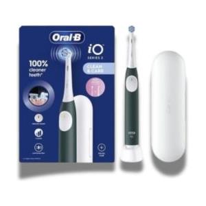 Oral-B iO 2 Spazzolino Elettrico Verde Forestale con Custodia da Viaggio e Testina di Ricambio - Delicato sulle Gengive, Efficace sulla Placca in Cura della Persona