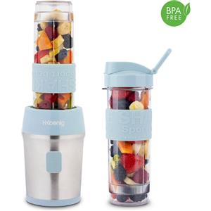 H.Koenig SMOO16 Mini Frullatore Senza BPA 570mL, Potente 300W, 2 Borracce Portatili, Acciaio Inox, Design Compatto