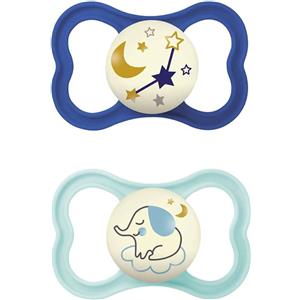MAM Air Night Succhietto 16 Mesi in Silicone Doppio Maschio con Fori di Ventilazione e Pulsante Luminoso