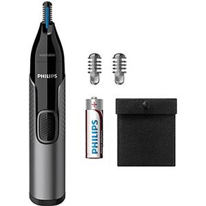 Philips Nose Trimmer Serie 3000 NT3650/16 - Rifinitore per Peli di Naso, Orecchie e Sopracciglia con PrecisionTrim e Protective Guard System, Acciaio Inox, Grigio