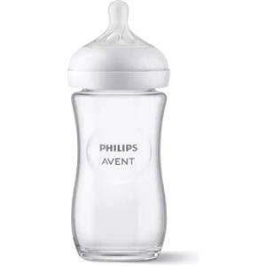 Philips AVENT Biberon Natural Response in Vetro 240 ml, Tettarella Flusso 3, Senza BPA