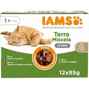 IAMS Delights Adult - Alimento umido per gatti in salsa, multipack con gusti di carne e pesce, 12 x 85 g in Alimenti Cani e Gatti