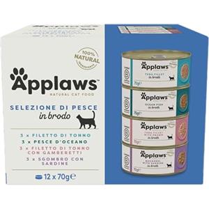 Applaws Alimento Umido per Gatti Multipack Selezione di Pesce in Brodo 12 x 70 g - Gusti Vari