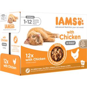 IAMS Delights Kitten Cibo Umido per Gatti con Pollo in Salsa - Multipack da 12 x 85 g