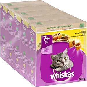 WHISKAS Senior 7 Cibo Secco Pollo - Alimento Completo per Gatti Anziani, 5 Confezioni da 800 g