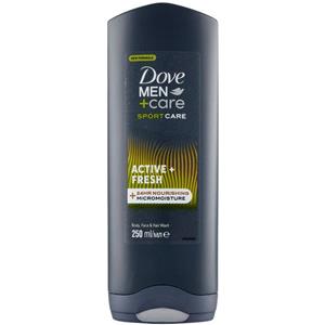 Dove Men Care Active Fresh Gel Doccia Rinfrescante 250 ml - Detersione per Corpo, Viso e Capelli con Idratazione 24 Ore