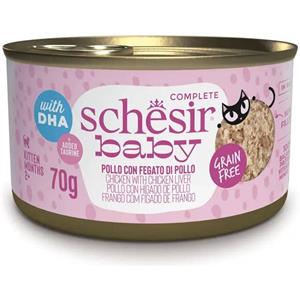 Schesir Baby Complete Cibo Umido per Gattini - Pollo e Fegato con DHA e Taurina - 12 Lattine da 70g