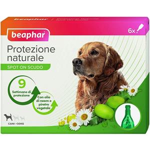 Beaphar Protezione Naturale Spot On Scudo Cane Grande | > 30 Kg - Beaphar - Protezione Naturale Spot On Scudo Cane 3 o 6 Pipette - 6 Pipette - Da 30Kg