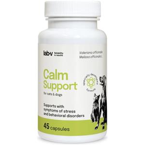 LAB-V Calm Support - Calmante Naturale per Cani e Gatti con Valeriana, Melissa e L-Triptofano, 45 Capsule per Stress e Ansia