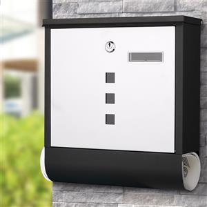 Bakaji Cassetta Postale in Acciaio Inox da Parete con Chiusura Chiave e Porta Giornale - Dimensioni 30x33x9 cm, Bianco e Nero