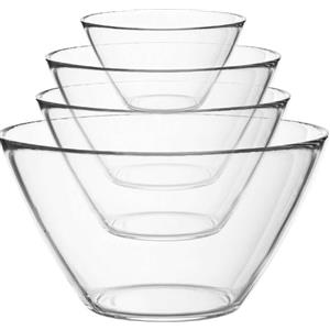 Bormioli Rocco Set di Insalatiere in Vetro - 4 Pezzi Versatili e Impilabili per Frullare, Mescolare e Servire