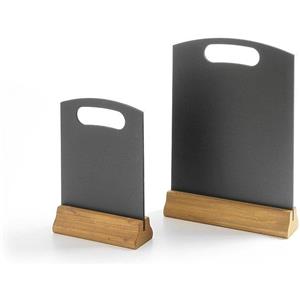 HENDI Lavagna da Tavolo Nera 15x23 cm con Base in Legno - Set di 2 Pezzi