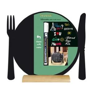 SECURIT Lavagna da Tavolo Silhouette Piatto - Base in Legno Laccato, Dimensioni 24,3x25,3x6cm, Inclusa 1 Pennarello Bianco