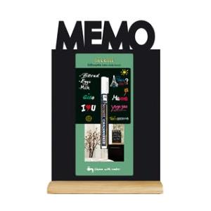SECURIT Lavagna da Tavolo Silhouette Memo - 34,5 x 21 cm - Nero - Base in Legno Duro Laccato, Scrivibile da Entrambi i Lati, con Marcatori Inclusi