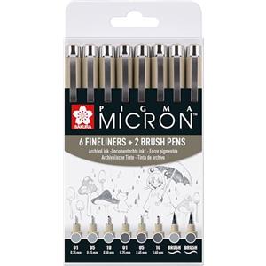 Sakura Pigma Micron Penne Fineliner Set 8 pz - Grigio Freddo Chiaro e Grigio Freddo