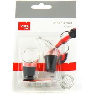 Vacu Vin Set di 2 Tappi Versatori Wine Server in Plastica e Silicone Nero, Chiusura Ermetica e Versamento Facile