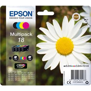 Epson Multipack Margherita C13T18064022 - 4 Colori Inchiostri Claria Home (Nero 5,2 ml, Colori 3,3 ml) - Resa fino a 180 Pagine