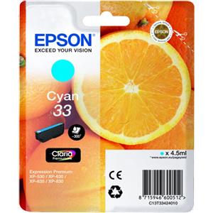 Epson Cartuccia di Inchiostro Ciano T33 Claria Premium - C13T33424012, 4,5 ml, 300 Pagine, Compatibile con Epson Expression Premium