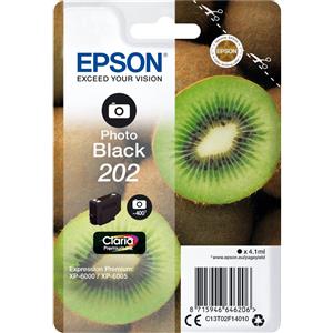 Epson Kiwi Cartuccia d'Inchiostro Nero Foto 202 Claria Premium Ink - 4,1 ml, 400 Pagine, Compatibile con XP-6000/XP-6005/XP-6100/XP-6105