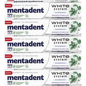 Mentadent 5x White System Dentifricio con Bicarbonato e Fluoro - 5 Flaconi da 75 ml, Pasta, Non aromatizzato