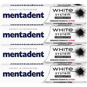 Mentadent 4x Mentadent White System Carbone Attivo Dentifricio Sbiancante - 4 Flaconi da 75 ml ognuno