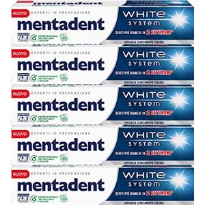 GREENPEOPLE 5x Mentadent White System Dentifricio Sbiancante Delicato sullo Smalto - 5 Flaconi da 75 ml ognuno