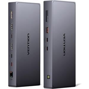 VENTION Docking Station DisplayLink 11 in 1 per MacBook M1/M2/M3/M4 - Doppio Monitor 4K@60Hz, USB A/C 10Gbps, HDMI, DP, PD 100W, SD/TF