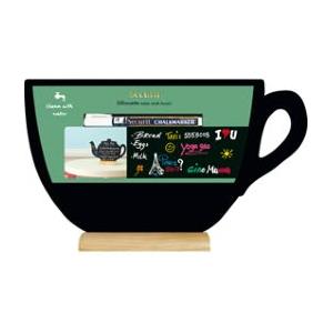 Securit FBT-CUP Lavagna da Tavolo a Forma di Tazza con Base in Legno - Dimensioni 22 x 33 x 6 cm, Include Pennarello Bianco e Gesso Liquido