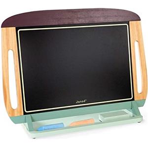 Janod Lavagna da Tavolo in Legno Grande Bifacciale Portatile Nera/Bianca Magnetica con Base Antislittamento - Include 2 Gessetti, 1 Pennarello Cancellabile e 1 Cancellino - Da 3 Anni, J09631