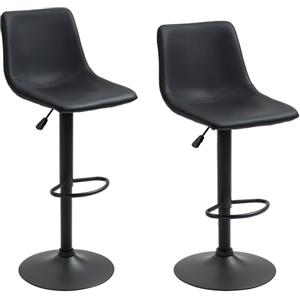 HOMCOM Set di 2 Sgabelli da Bar Vintage Regolabili e Girevoli con Poggiapiedi in Similpelle, Altezza 90-110 cm, Colore Nero