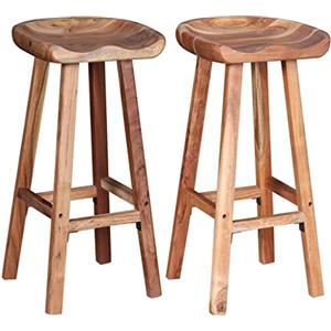 vidaXL Set di 2 Sgabelli da Bar in Legno di Acacia Massiccio - 38x37x76 cm, Colore Marrone