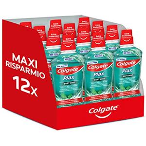Colgate Collutorio Plax Soft Mint Green Maxi Formato 12 x 500 ml I Con Ingrediente Antibatterico I Protezione dalla Placca per 24H I Gusto Menta I 0% Alcohol