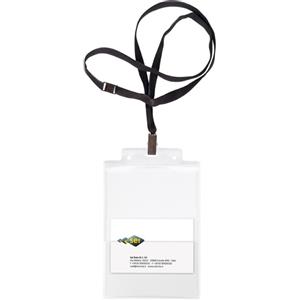 Durable Portanome 60x90 mm con cordoncino in tessuto nero, clip di sicurezza e inserto personalizzabile - confezione da 5