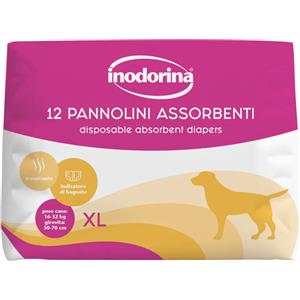 Inodorina Pannolini Assorbenti Usa e Getta XL per Cani Femmine, 12 Pezzi, Tecnologia Traspirante e Indicatore di Bagnato