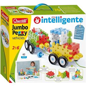 Quercetti Jumbo Peggy Vehicles - Gioco di Costruzioni Creativo per Bambini con Piastre, Chiodoni e Targhe Colorate