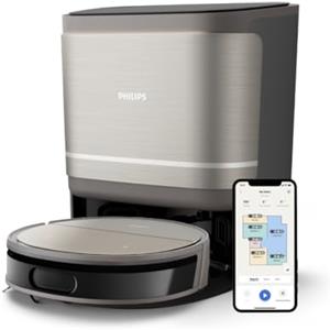 Philips HomeRun Serie 9000 Robot Aspirapolvere e Lavapavimenti XU9100/10 - Aspirazione Ultra-Forte, Lavaggio con Acqua Pulita, Stazione All-in-One, Rilevamento Ostacoli, Controllo tramite App