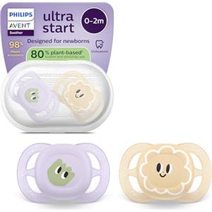 Philips Avent Ultra Start - Succhietti ortodontici in silicone morbido, senza BPA, con custodia per sterilizzazione, set da 2 per neonati