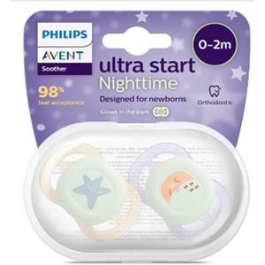 Philips Avent Ciuccio Ultra Start Notte 0-2 mesi in Silicone Fluorescente con Custodia - 2pz