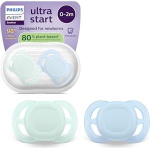 Philips Avent Ultra Start - Succhietti ortodontici per neonati, in silicone morbido, senza BPA, con custodia per sterilizzazione, set da 2
